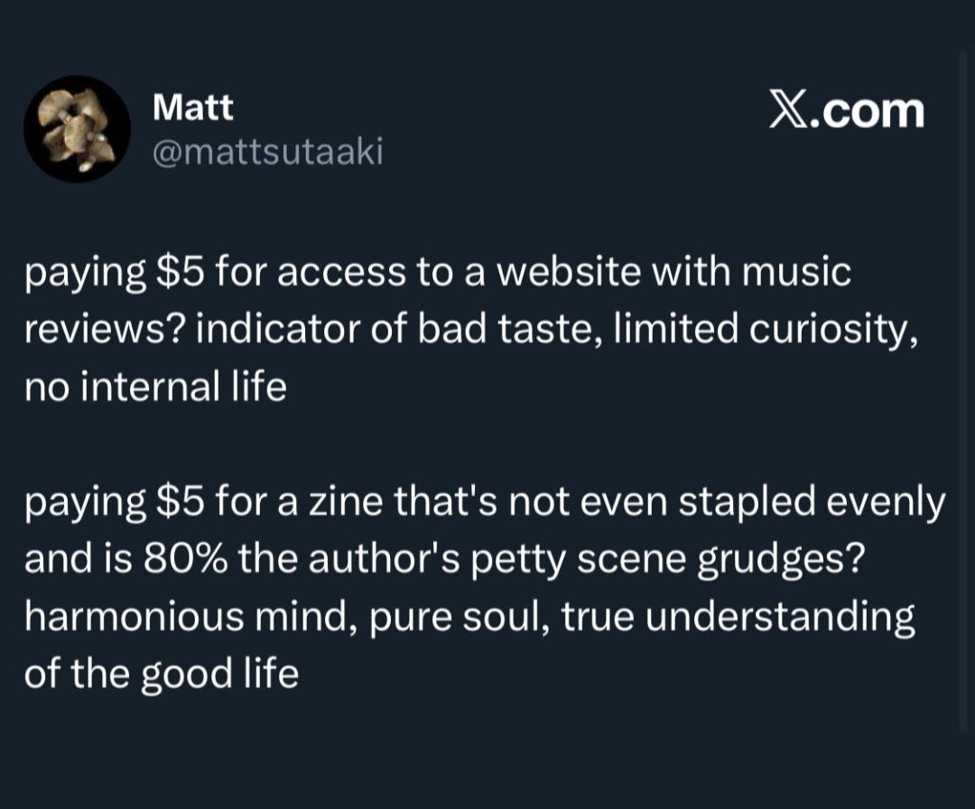 As ever there’s hit-and-miss elements to his work but I always enjoy re-engaging with it, if only for seeing which ideas now seem very prescient in our current context and which do not. There’s also something that feels quite old-school and fun about hunting down these old interviews and snippets, taking a bit of time with longform reading and reflection in a way that harkens back to the early 2000’s of online culture - something that was a far more text-based means of expression than the visual content we now consume.